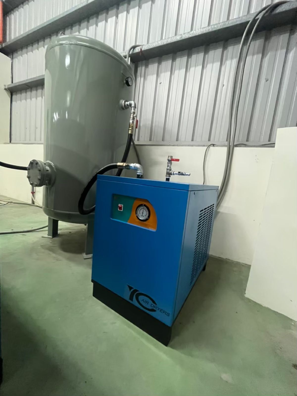 因新廠區須增加生產機台,所以客戶再次添購變頻空壓機1台搭配儲氣桶及乾燥機,目前正常運轉中。
