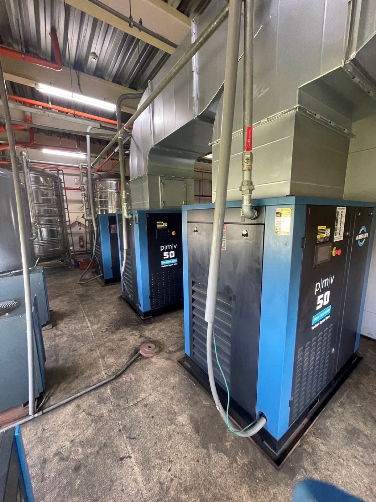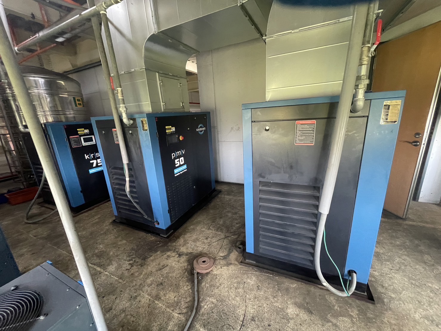 汰換成開山 50HP變頻兩台,舊機 50HP定頻當作備機,改善過後總馬力數從 120HP降低至 80HP,