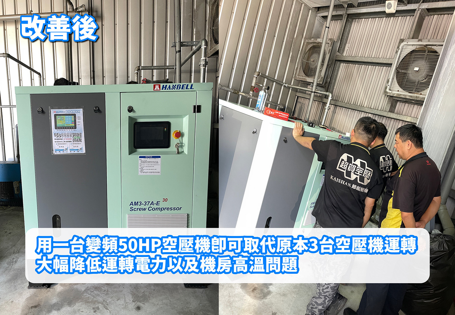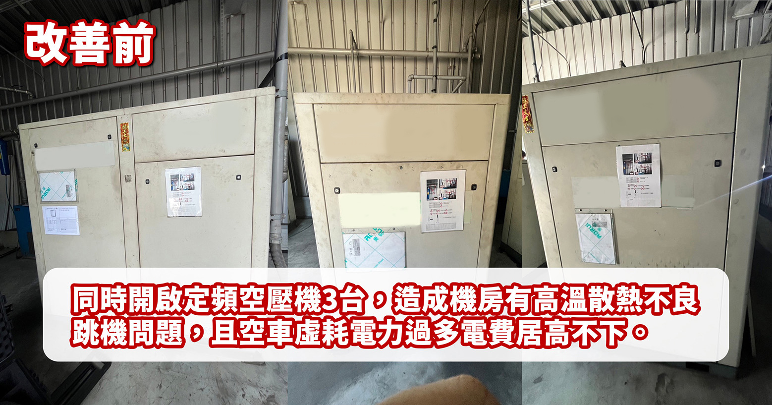客戶原本廠內同時開啟 75+50+30 HP共三台定頻空壓機,造成機房熱源過多,