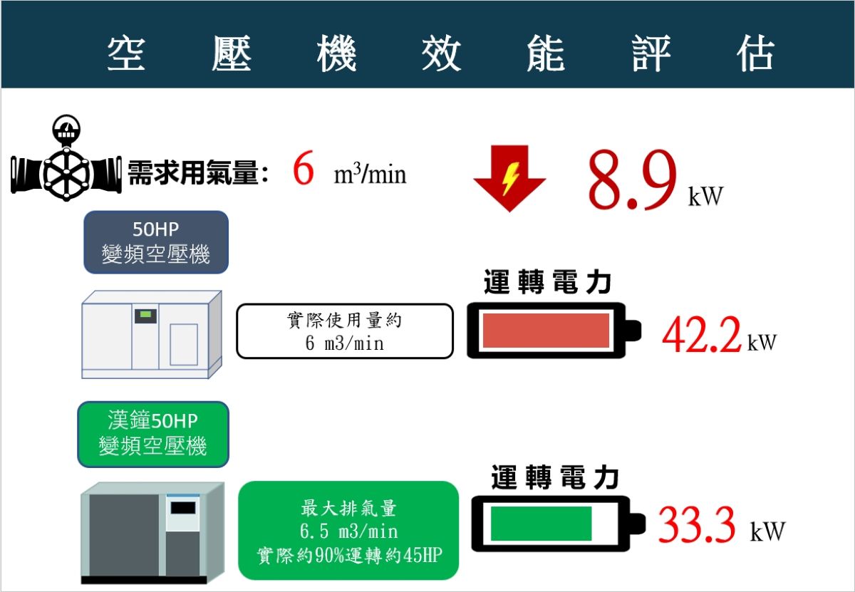 由變頻空壓機調節下,無任何浪費資源,年省下數二十萬以上,給客戶更完整的空壓能源解決方案。