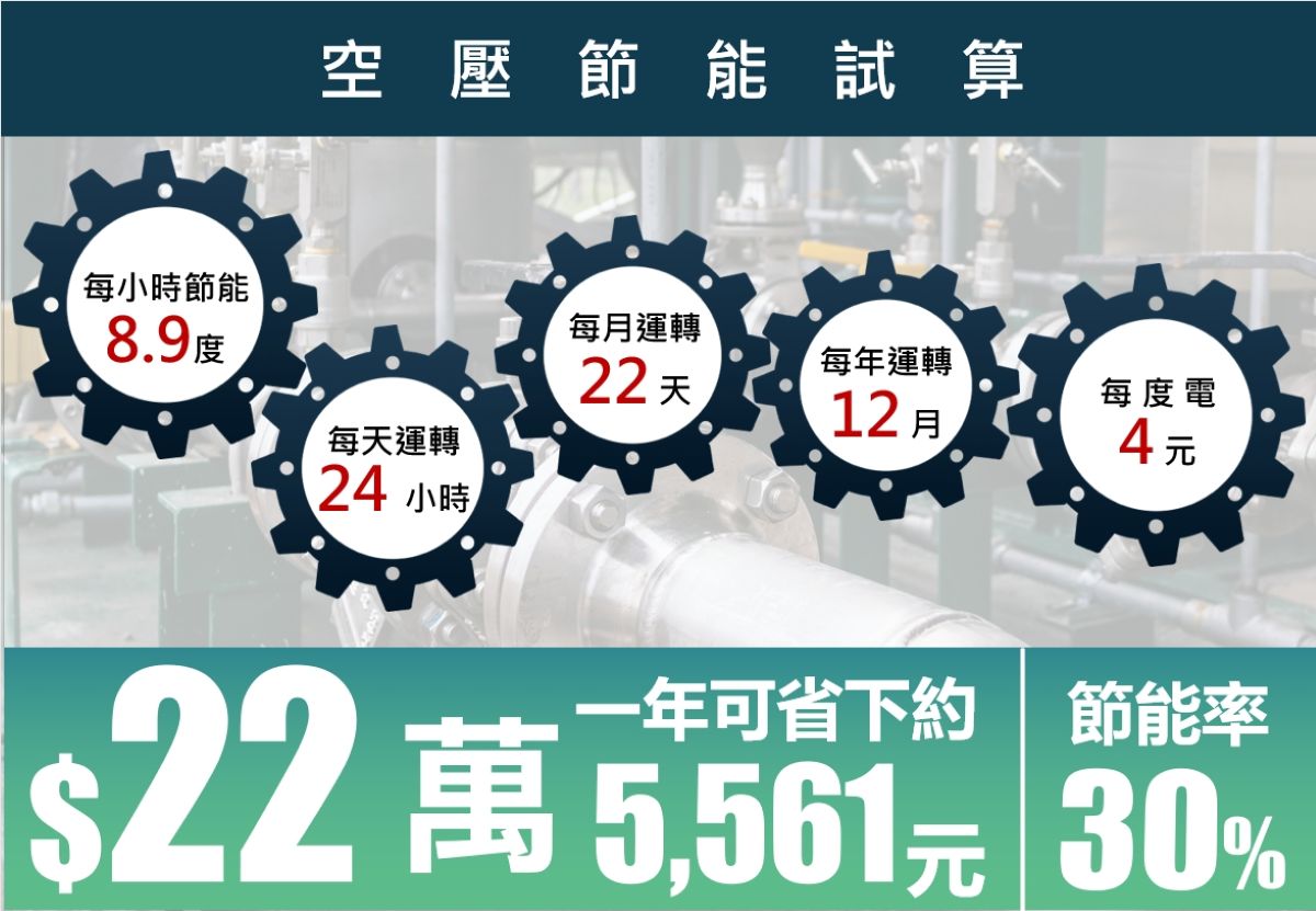 需要新增空壓設備,配合政府2025年度動力與公用設備補助,補助二十二萬。