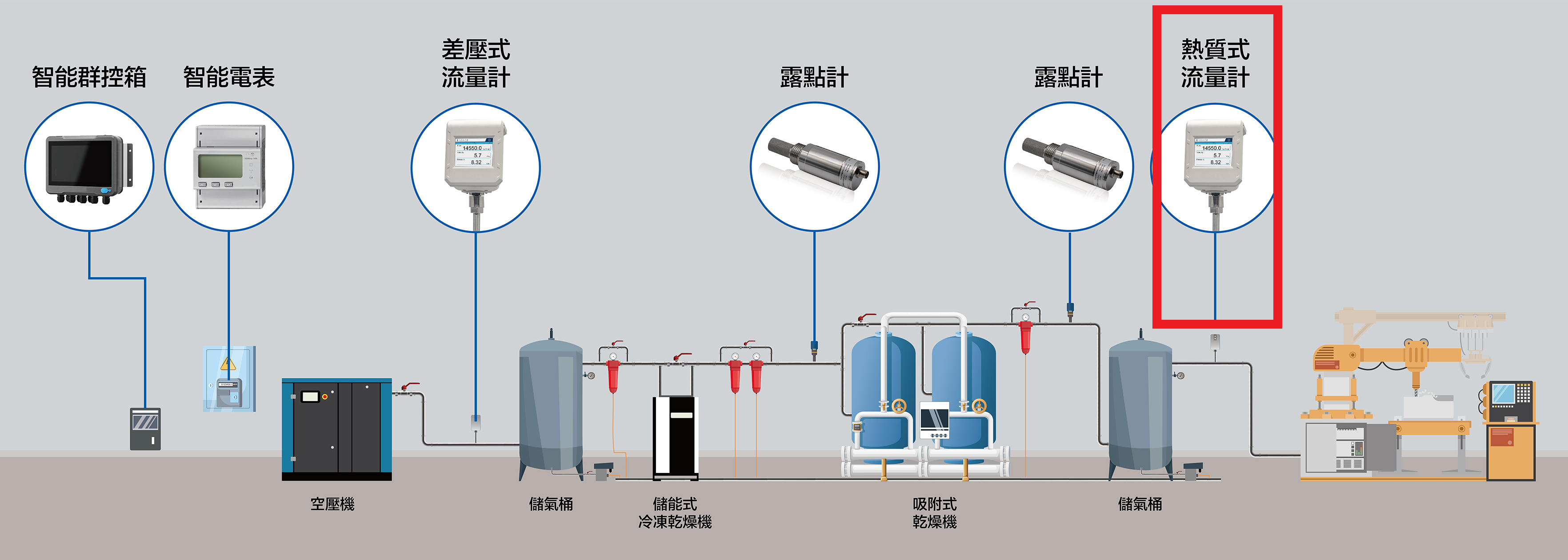 適用多種氣體測量:壓縮空氣、氮氣、氧氣、二氧化碳、其他非冷凝氣體。