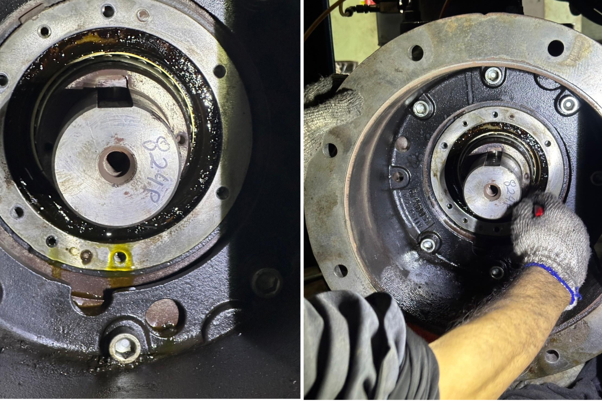 改善前,核心部件潤滑不良且有損耗;改善後,經過精密維修,恢復穩定運作。