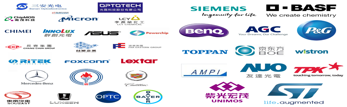 電子與半導體:富士康科技集團、群創光電、友達光電、日月光集團、聯華電子、升陽半導體。