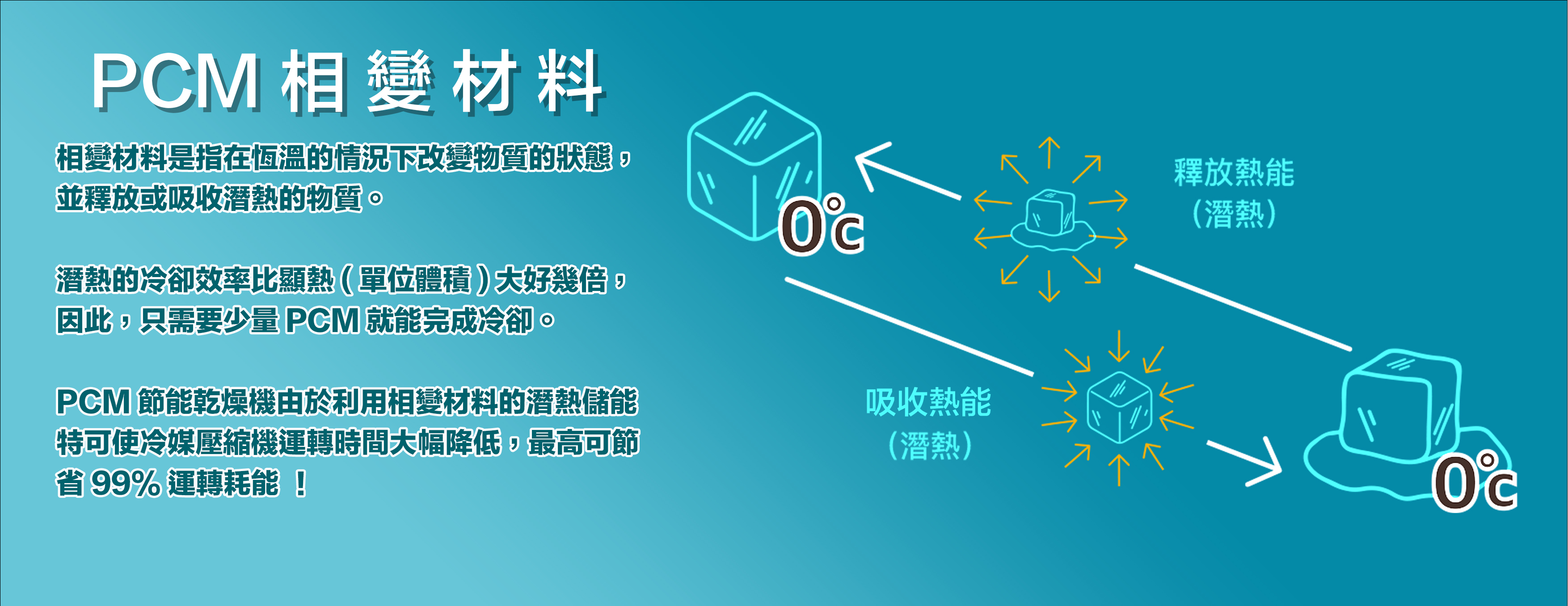 儲能型乾燥機利用PCM相變化材料讓冷媒壓縮機有休息節電的空間。