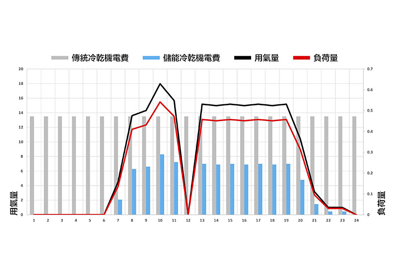 壓縮空氣的溫度。相較之下,儲能型乾燥機可以配合廠內用氣量的狀況休息或運
